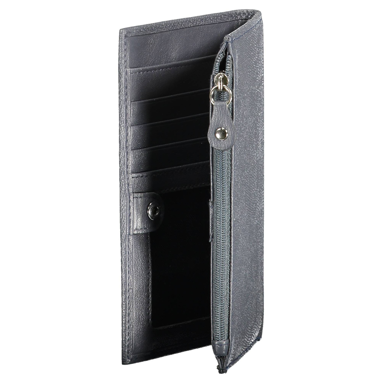 portafoglio, doppi spazi in terni formato da card, 1 tasca esterna portamonete, chiusura con zip e automatico, logo