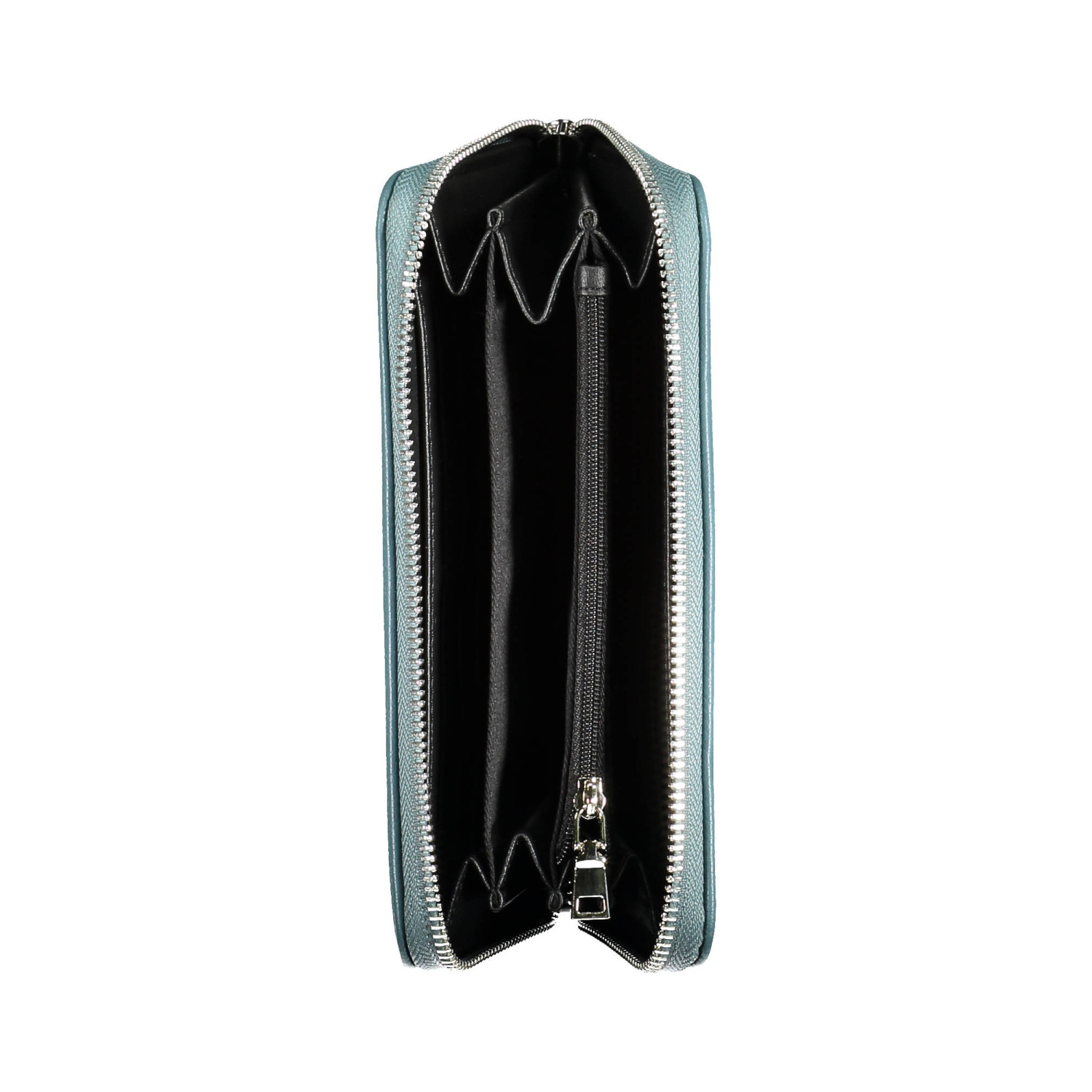 portafoglio 5 scomparti, portamonete, doppi spazi formato da card, chiusura con zip, logo