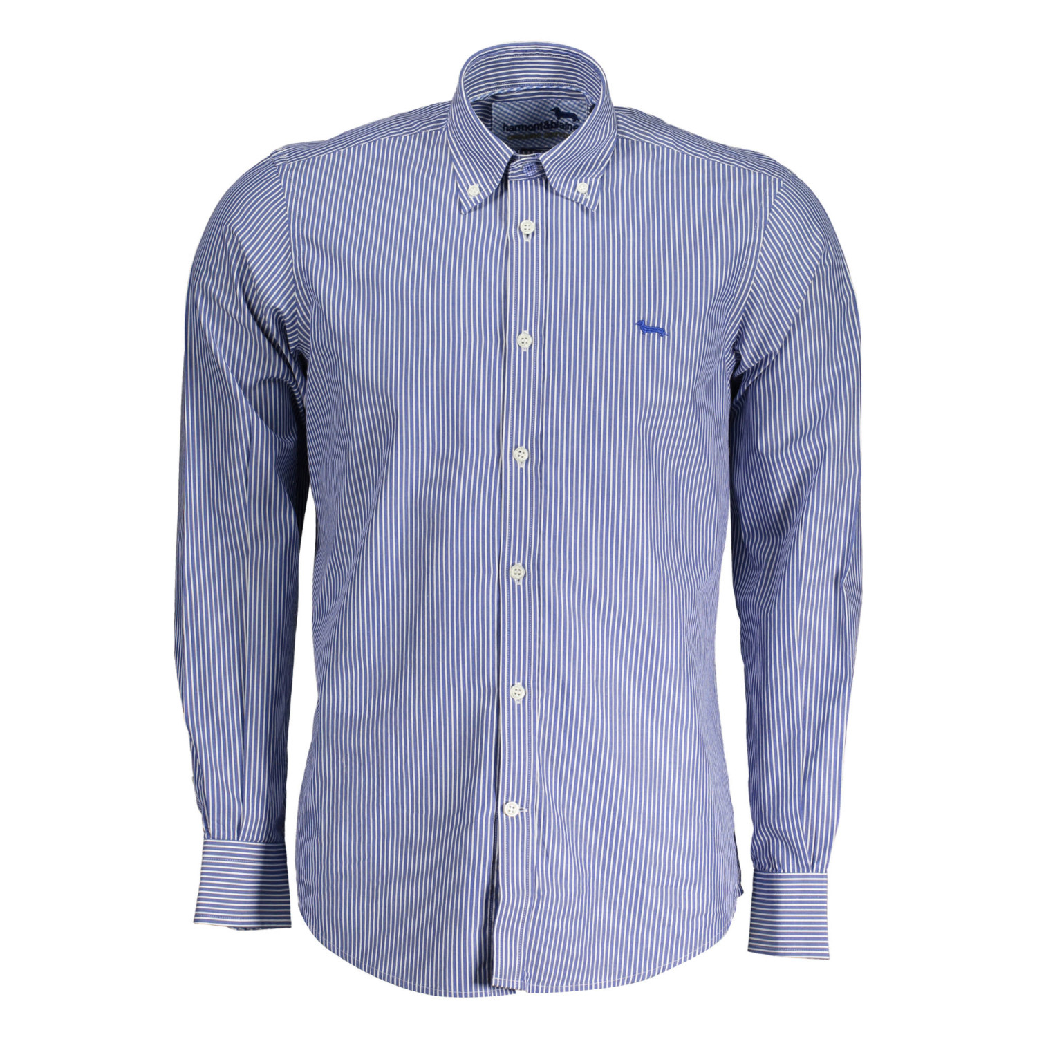 camicia regular fit, maniche lunghe, collo button down, polsini 1 bottone, interno polsini in contrasto, bottoni, logo, organic cotton