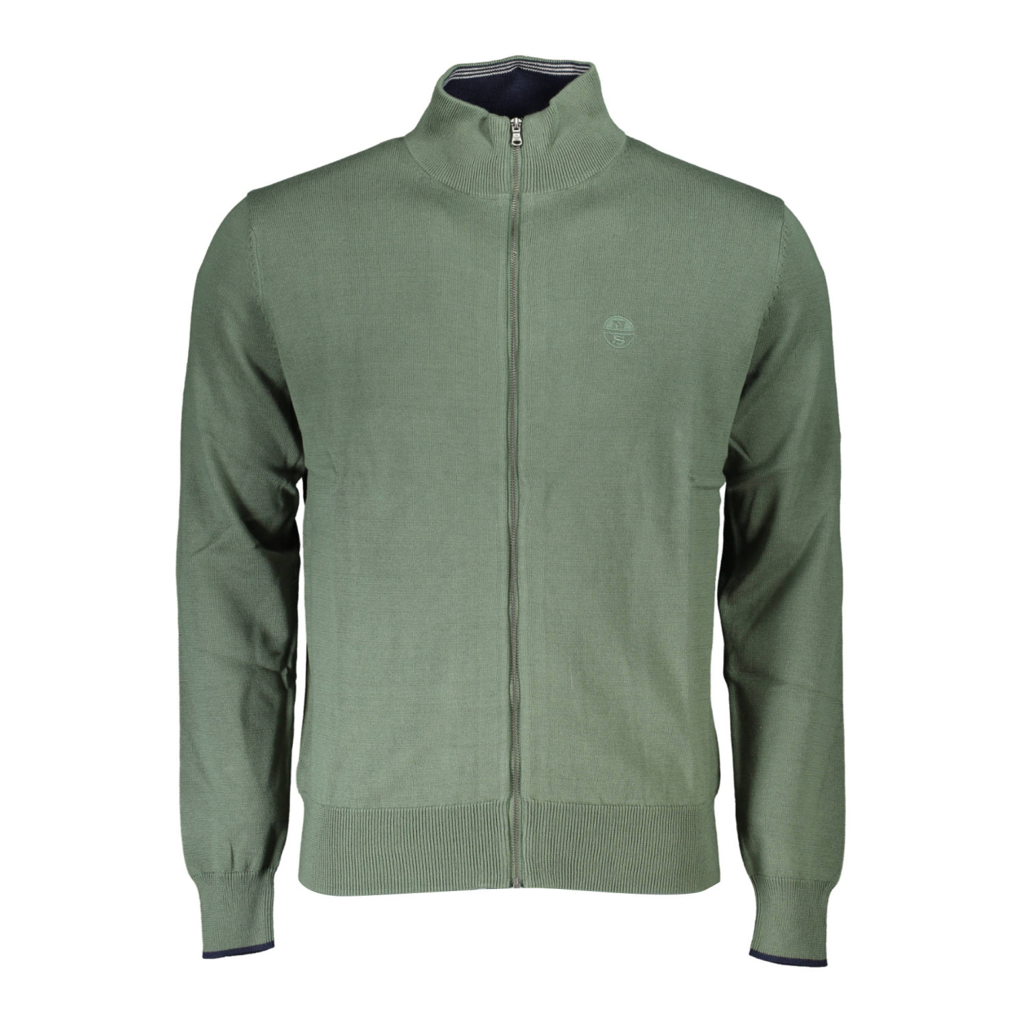 cardigan maniche lunghe, collo alto, zip, ricamo, logo, organic cotton