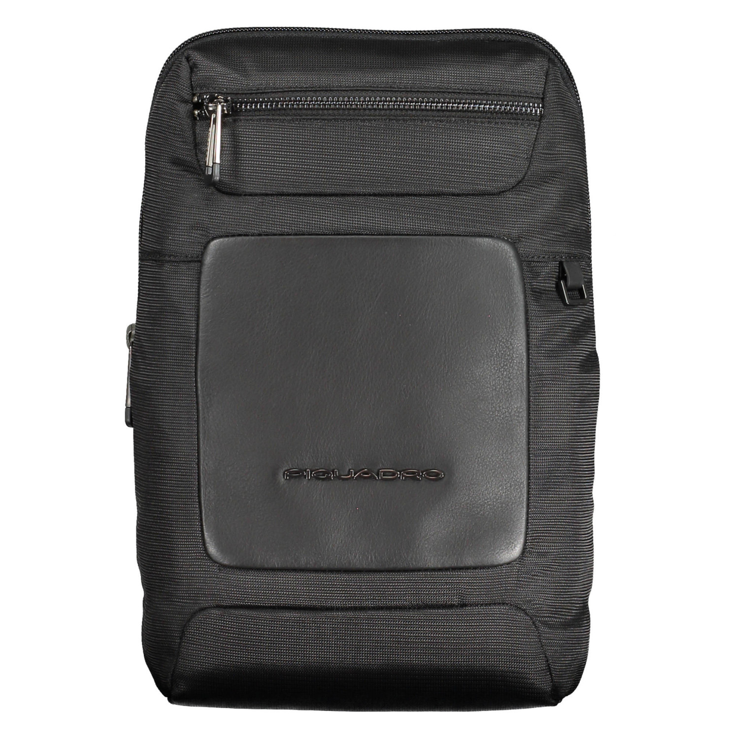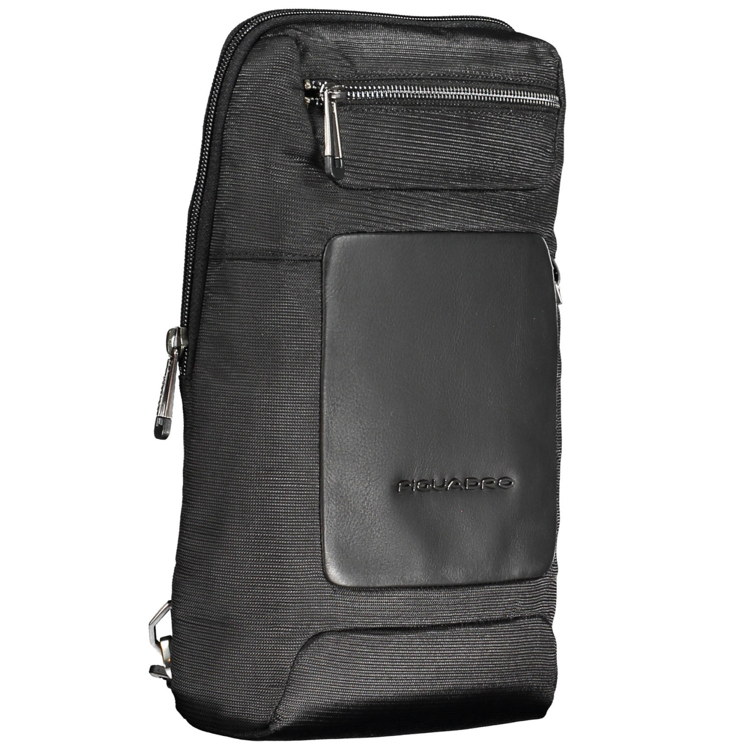 tracolla monospalla, 2 tasche esterne, 1 scomparto interno, 1 tasca interna, dettagli a contrasto, chiusura con zip, logo, 100% recycled