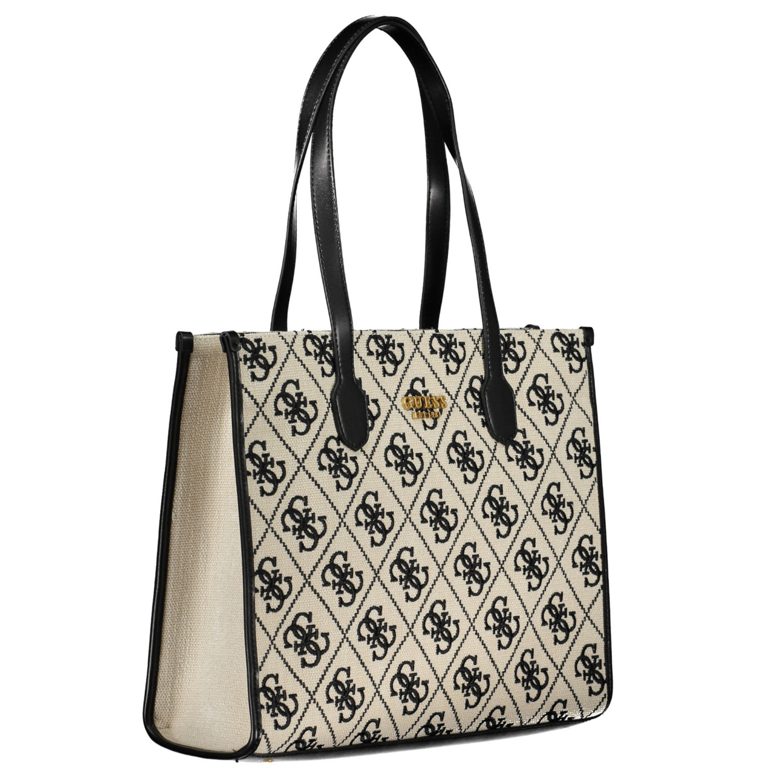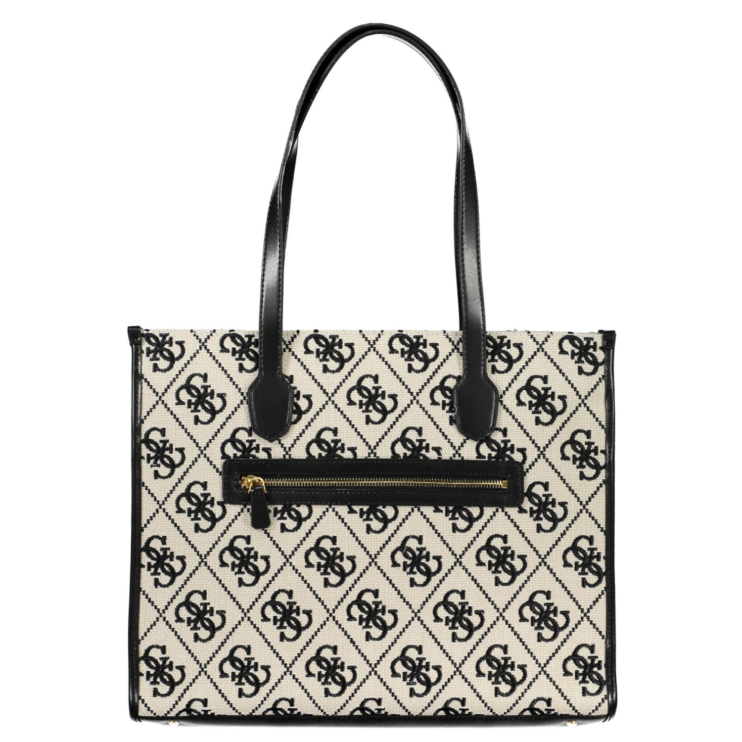 borsa 2 manici a spalla, 1 tasca esterna, 2 scomparti, 1 tasca centrale, 1 tasca interna, spazi interni portadocumenti, dettagli a contrasto, chiusura con zip, logo