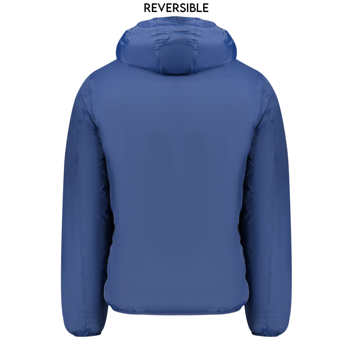 GIUBBOTTO MANICHE LUNGHE CON CAPPUCCIO, REVERSIBILE BLU/BLU ROYALE, 2 TASCHE ESTERNE, 2 TASCHE INTERNE, ZIP, APPLICAZIONE, LOGO