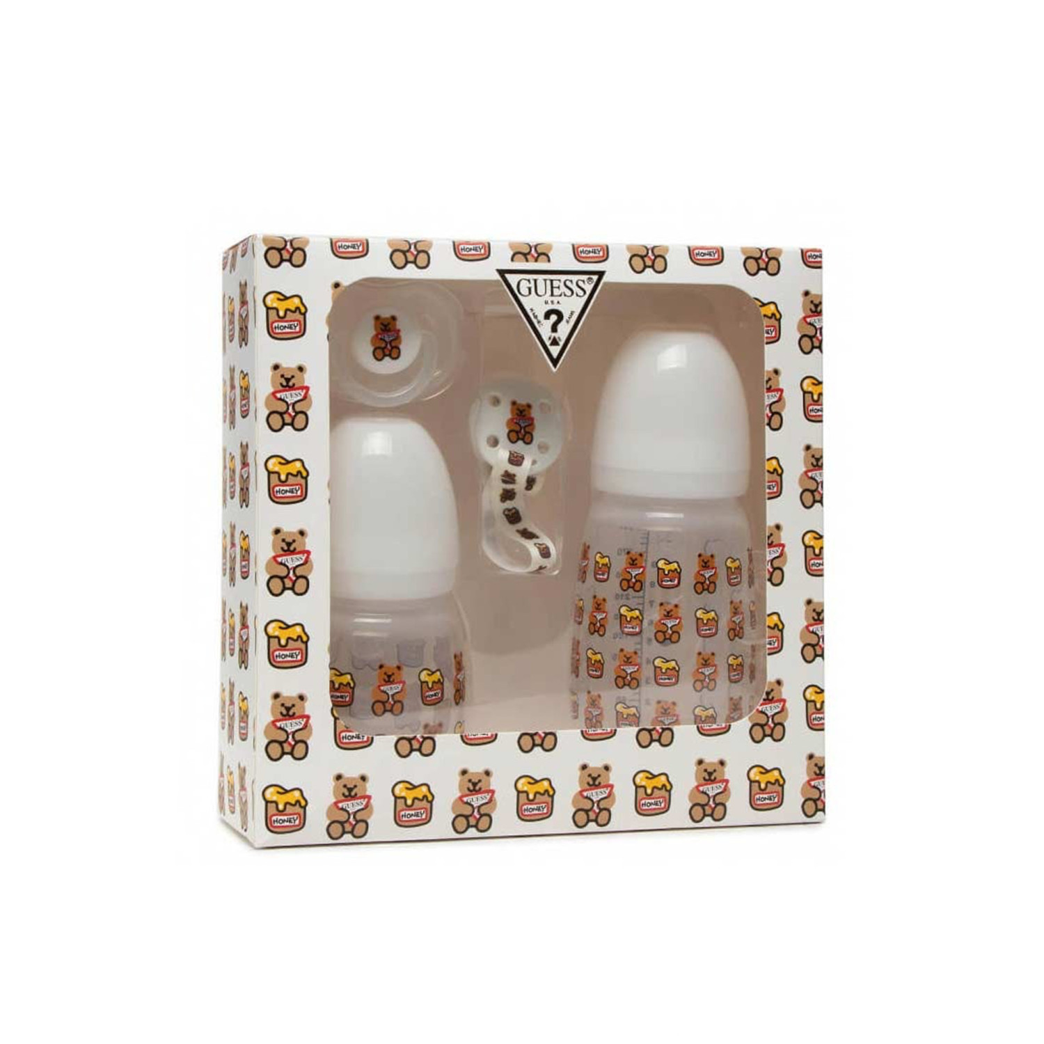 SET NEONATO 4 PZ, CIUCCIO CON CAPPUCCIO, CLIP X CIUCCIO, BIBERON 180 ML, BIBERON 310 ML, DETTAGLI A CONTRASTO, STAMPA, LOGO