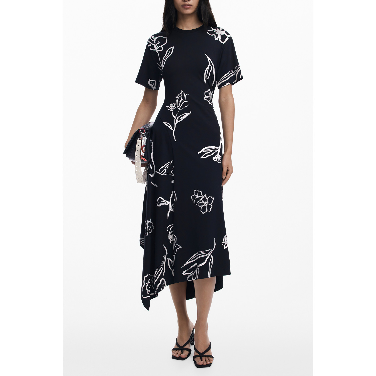 ABITO LUNGO MANICHE CORTE, CALMA, GIROCOLLO, STAMPA, LOGO