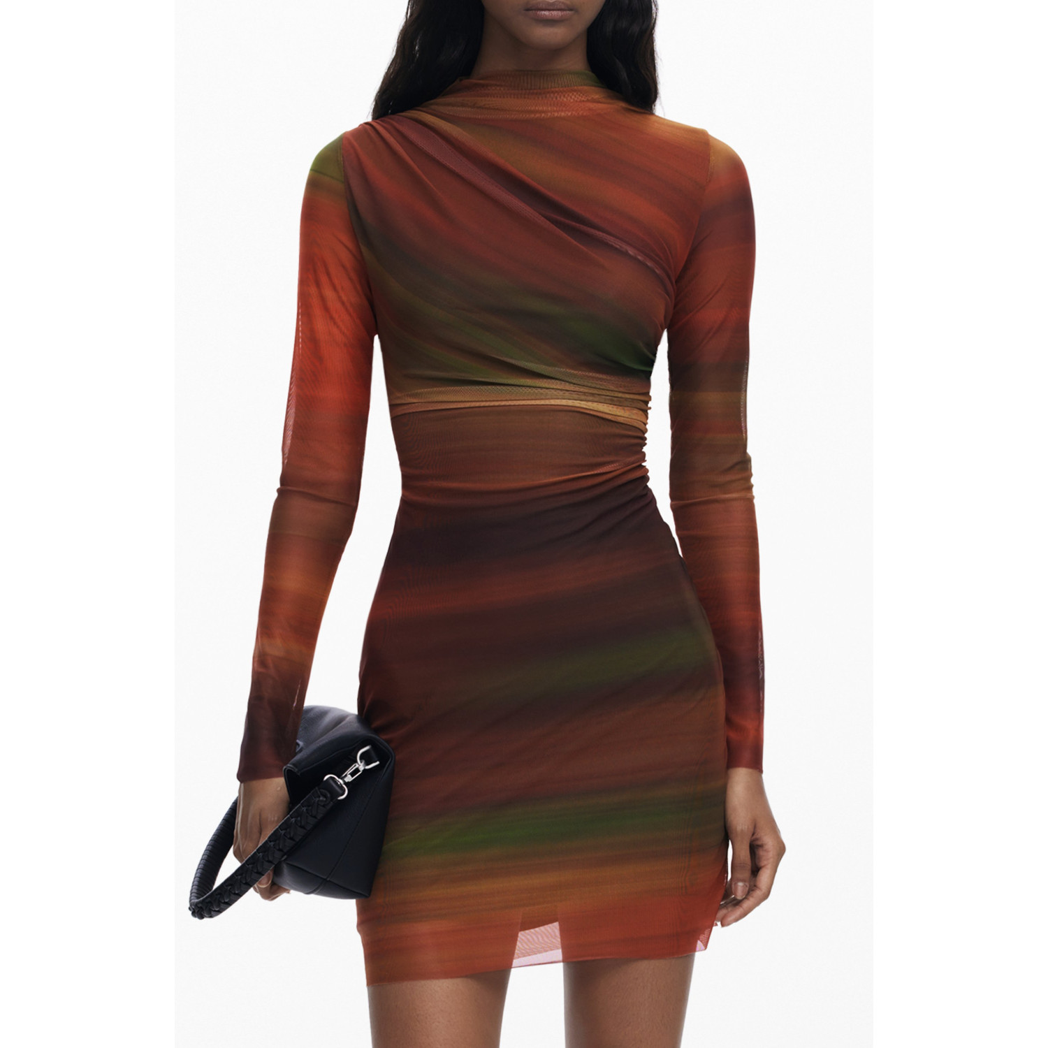 ABITO CORTO MANICHE LUNGHE, COLLO ALTO, DETTAGLI A CONTRASTO, LOGO