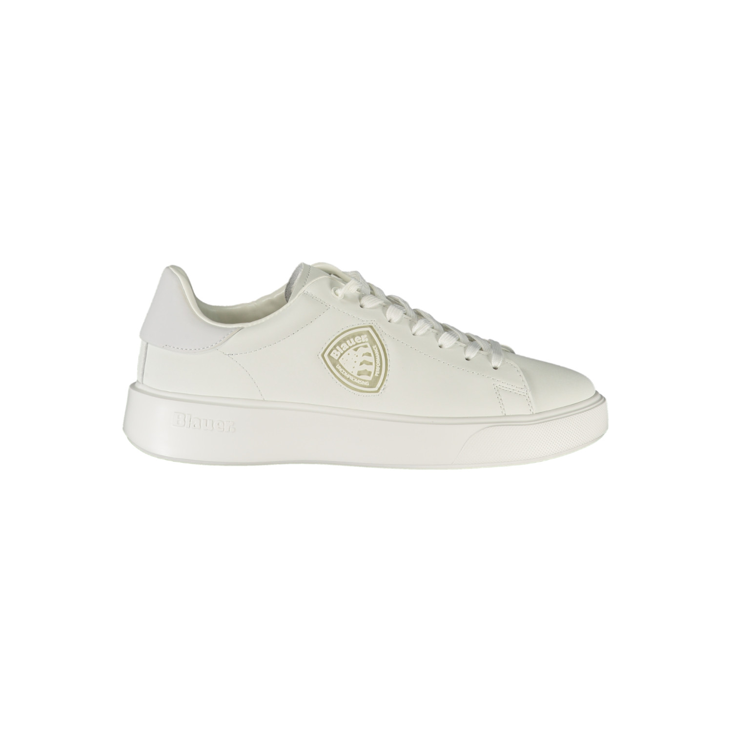 CALZATURA SPORTIVA CON LACCI, DETTAGLI A CONTRASTO IN BLU, SUOLA A CONTRASTO, APPLICAZIONE, STAMPA IN RILIEVO, LOGO