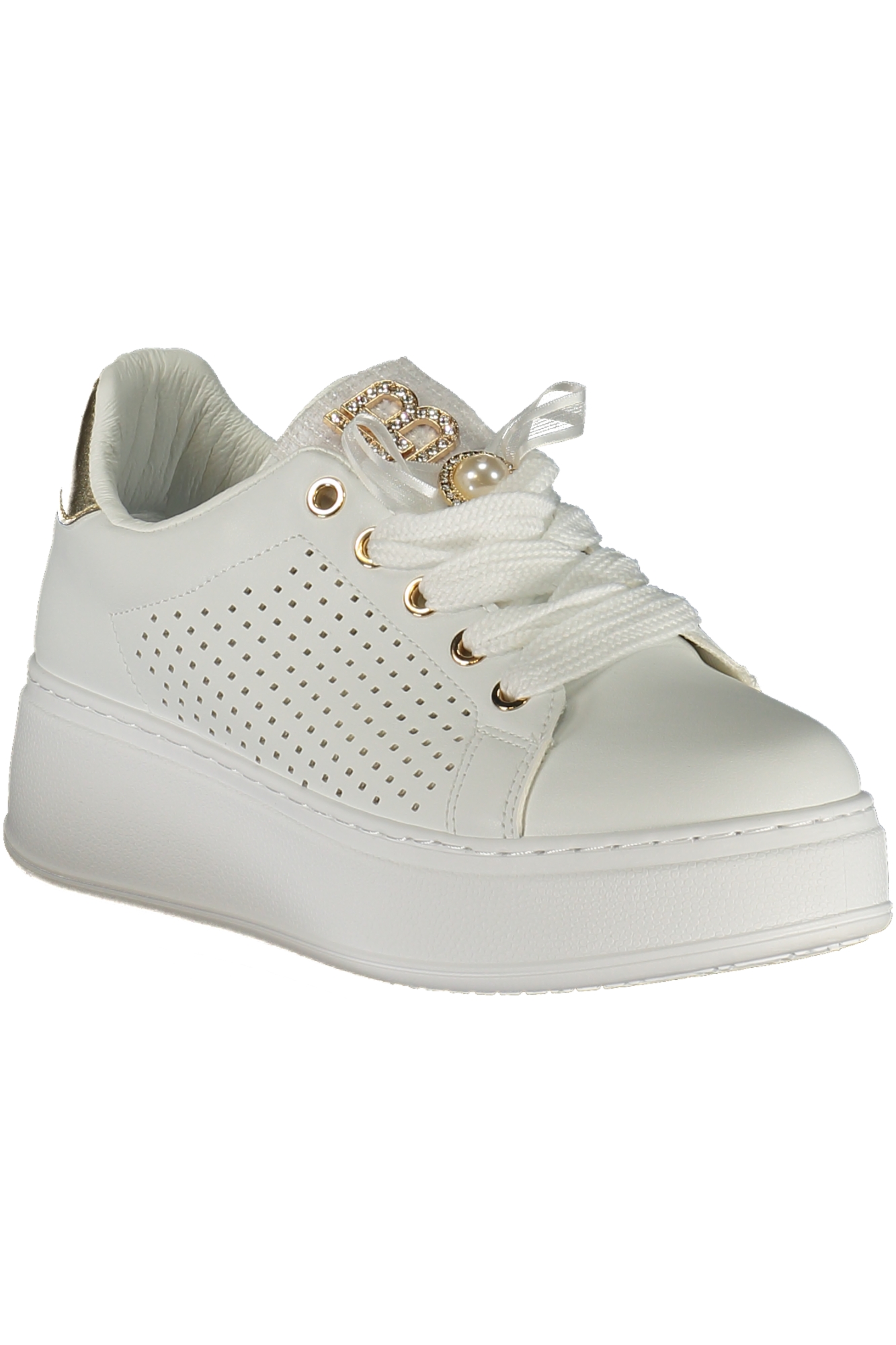 CALZATURA SPORTIVA CON LACCI, PLANTARE REMOVIBILE, DETTAGLI A CONTRASTO IN ORO, APPLICAZIONE, LOGO