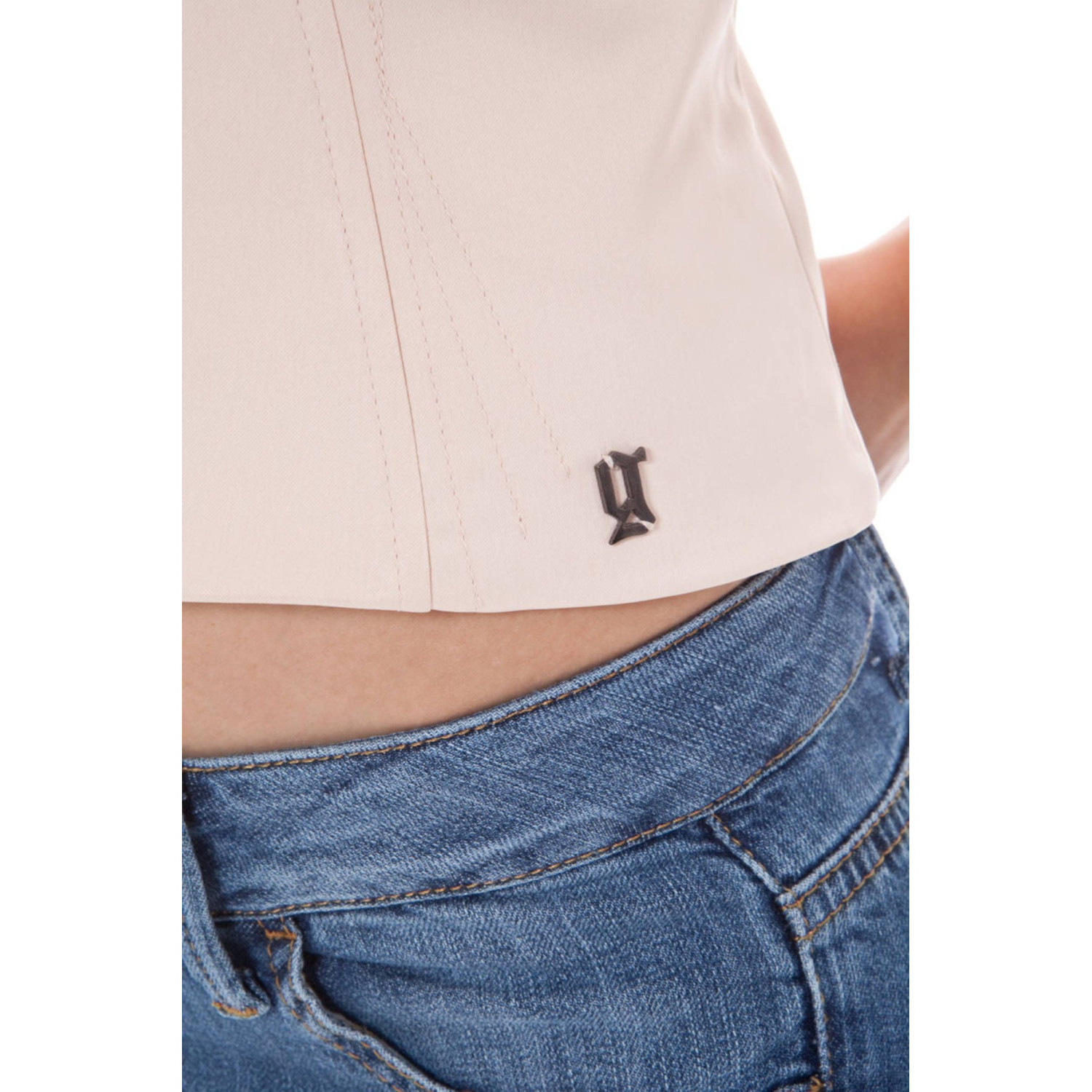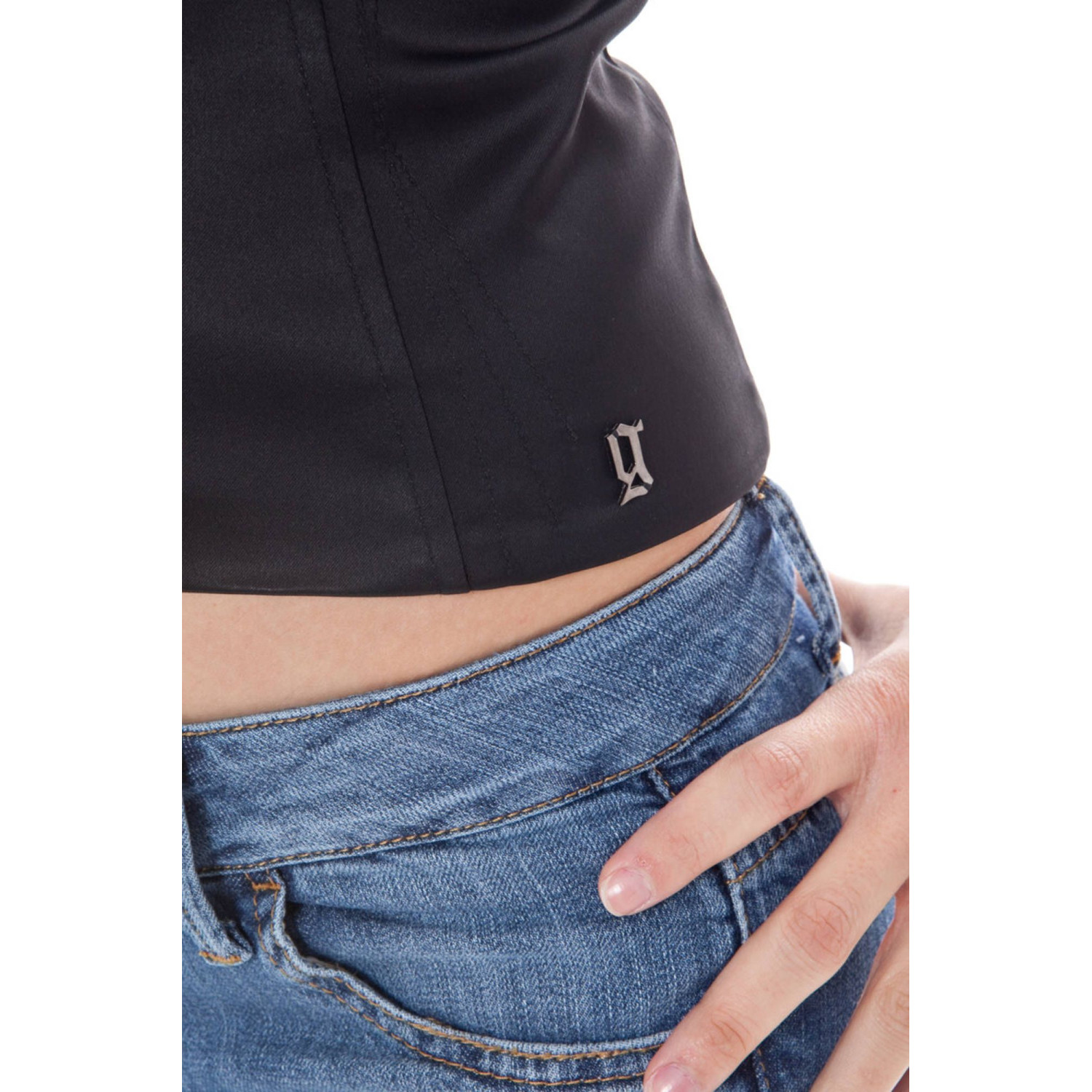 TOP, SPALLINE STRETTE REGOLABILI, ZIP, INSERTI IN PIZZO, LOGO