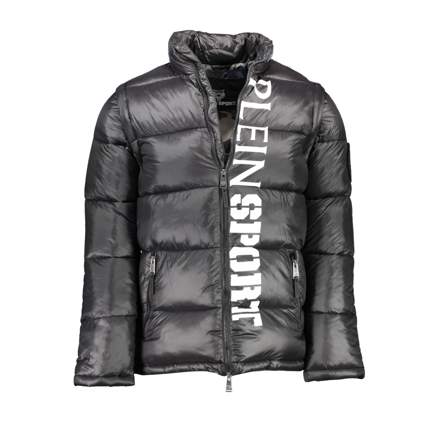giubbotto maniche lunghe removibili, 2 tasche esterne, 1 tasca interna, zip, stampa, logo